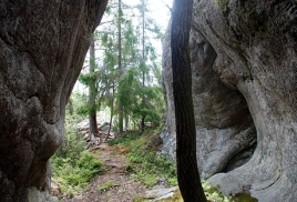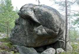 Jättegrytor är vanliga och längs den iordningställda geologistigen kan du se och läsa om vackert framslipade raukar, stenpelare som formats i det fasta berget. Stora flyttblock och ett klapperfält kompletterar provkartan på de olika geologiska bildningarna.